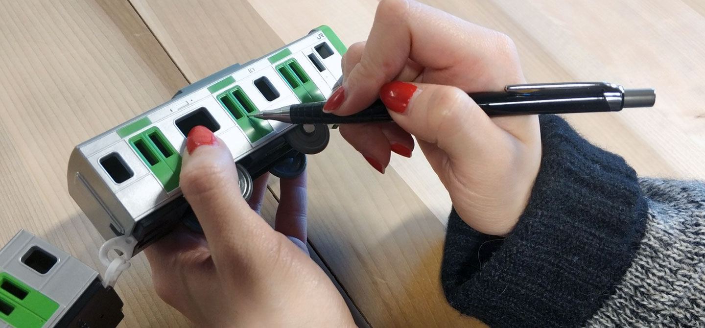 他のシャーペンや鉛筆よりも細い線が描けるので、プラレールのパーツの間を塗るなどこまかい作業には欠かせません。