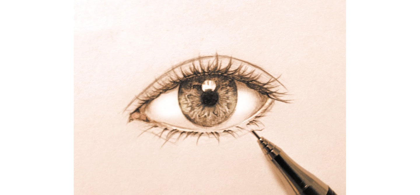 0.2mmで描く線は、本物の睫毛とも遜色ない細さです。その線を紙に走らせる事で、本物よりも本物らしく、本物よりも意思を持った私の「理想の繊細さ」が出来上がります。